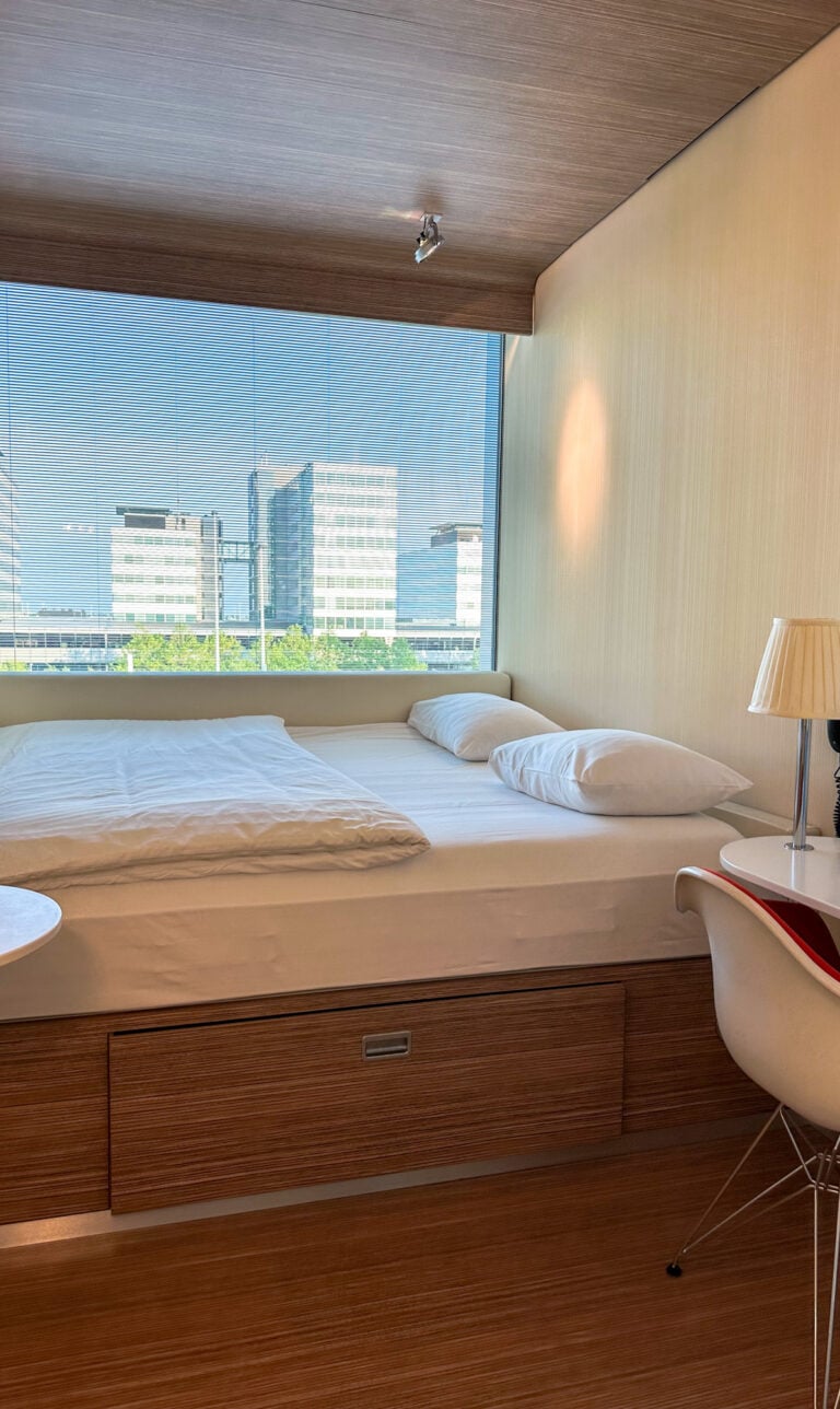 Leuk aan YotelAir is dat het deed denken aan een Japanse pod, dus het is echt een leuke ervaring. Het bed schuif je bijvoorbeeld met een knopje uit. Het is bovendien bijzonder om een keer te overnachten achter de douane. Dit is vooral ’s ochtends een ontzettend relaxte ervaring, omdat je zo bij de terminal staat. Geen stress dus! Het is natuurlijk wel zo dat eten en drinken op Schiphol een stuk duurder is, dus daar moet je wel rekening mee houden. Je gaat tenslotte de avond van tevoren al door de douane, dus je kunt niet zelf even een flesje wijn meenemen om maar iets te noemen. In verhouding is dit hotel wel erg duur voor wat je krijgt. Je betaalt echt voor de locatie. Overigens betaalden wij €122,- p.n., dus het is soms echt mogelijk hier een goede aanbieding voor te vinden.