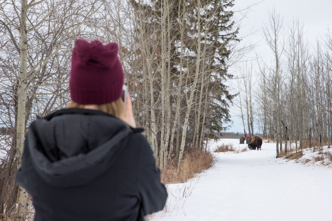 Elk Island National Park, vlakbij Edmonton, is beroemd om zijn imposante bizons. In de winter steken ze met hun donkere vacht prachtig af tegen de besneeuwde vlaktes. Je kunt het park zelf ontdekken, maar een sneeuwschoenwandeling met een gids brengt je nóg dichter bij de natuur. De stilte, ruimte en kans om dieren te zien maken dit een onvergetelijke ervaring.