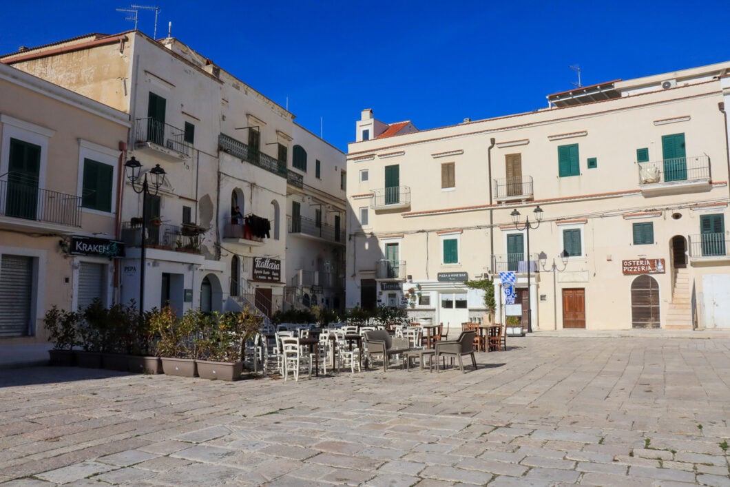 Het oude centrum van Vieste ligt boven op een klif en bestaat uit een wirwar van straatjes met trappen en witte huizen. Je vindt er leuke winkeltjes met souvenirs, gelateria’s en trattoria’s met terrasjes. Het is heel leuk om door de straatjes te dwalen, waarbij je telkens weer uitkijkt over de zee.