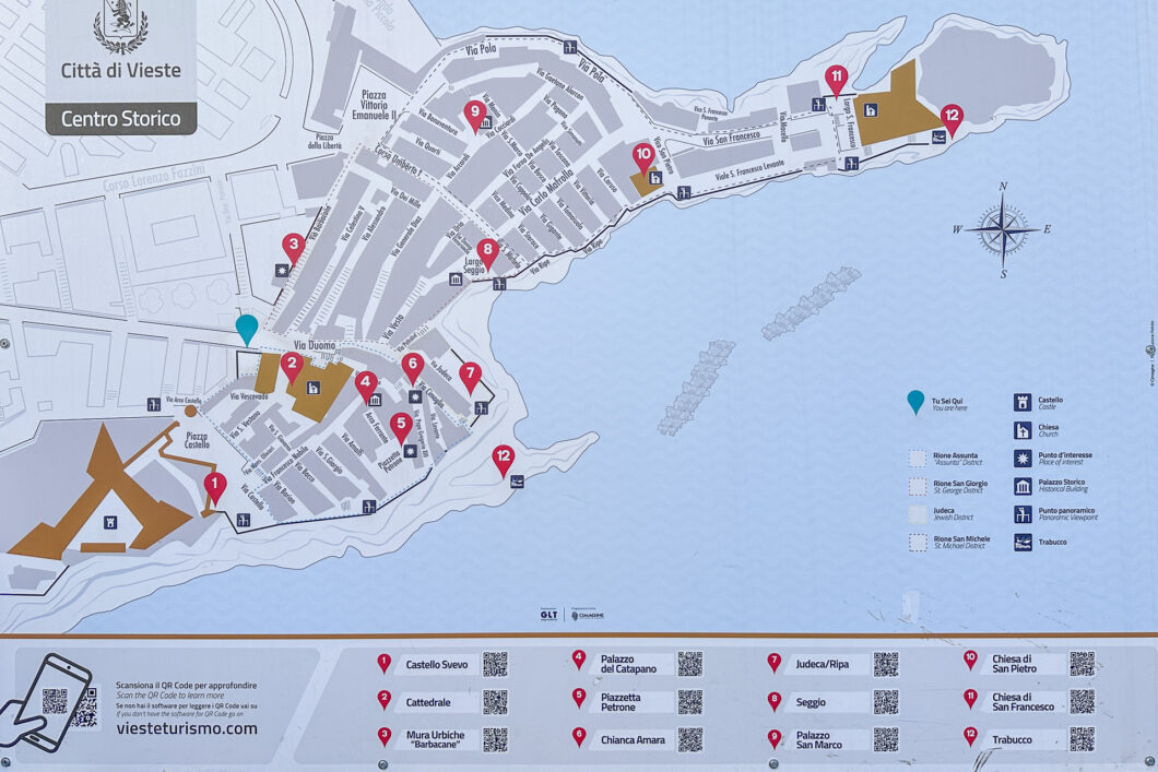 In Vieste maakte ik een foto van deze kaart met daarop de belangrijkste bezienswaardigheden in het centrum.