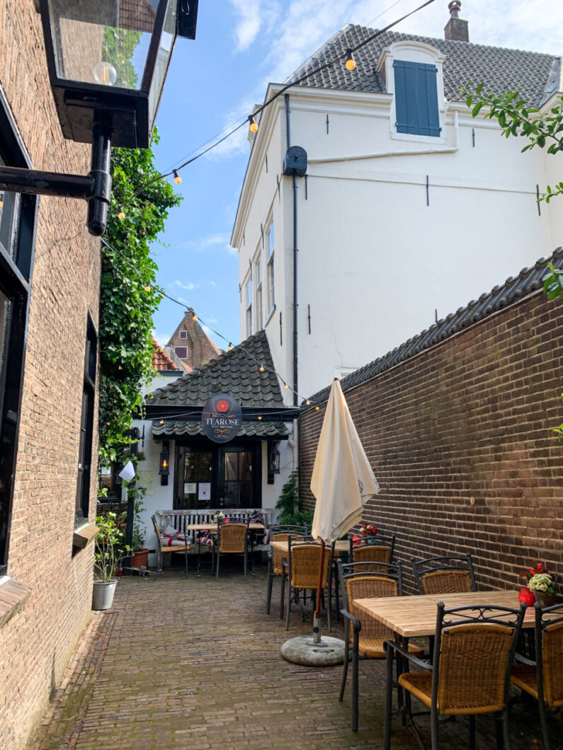 De Walstraat is mijn favoriete straat de stad en voor vele toeristen ook een van de bezienswaardigheden van Deventer. Zo sfeervol, én je vindt er ook nog eens hele leuke winkeltjes. De Walstraat loopt helemaal van het Bergkwartier naar de Brink. Ik noemde al de drogisterij en snoepwinkel, maar een ander uniek plekje in de Walstraat is de Tearose. Al zie je het niet direct aan de buitenkant, Tearose ligt een beetje verscholen achter de oude Vrouwengevangenis, maar dit restaurant in Engelse sfeer heeft een heel leuk terras, waar je kunt genieten van een traditionele Engelse high tea. Wel even reserveren van tevoren, zodat je zeker weet dat er plek is!