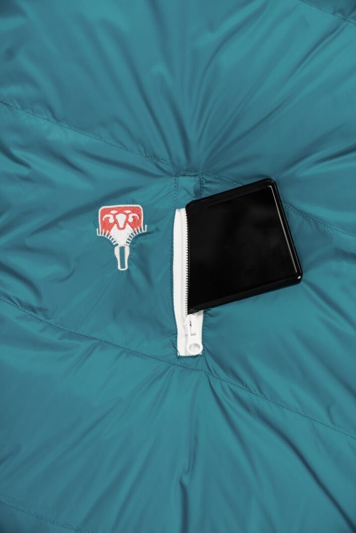 Verder zit er een vakje met rits aan de buitenkant van de slaapzak, ter hoogte van je borst. Deze is ideaal om je telefoon in te bewaren. Zeker in een koude of vochtige tent ideaal. Ook zit er aan de binnenkant van je slaapzak een handig vakje voor waardevolle spullen. Al met al heeft deze slaapzak dus veel slimmigheden die hem ideaal maken voor kampeertrips!