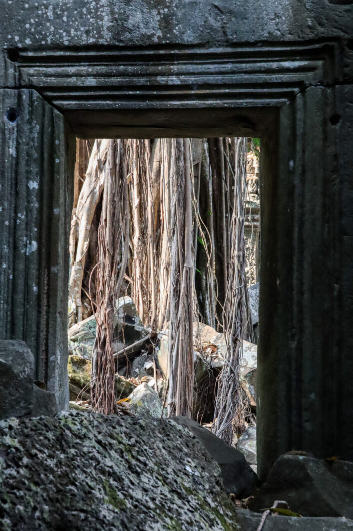 Een ander bekend bouwwerk bij Angkor Wat is Ta Prohm. De wortels van de reusachtige kapokbomen hebben de tempel overwoekerd en houden de blokken steen op hun plaats. De bizar gevormde wortels geven de tempel een mysterieus uiterlijk. Op deze plek zie je heel goed hoe de natuur door de eeuwen heen haar plek terugveroverd heeft. Op het hoogtepunt kende Angkor 300 tempels. Elke koning bouwde namelijk meer tempels dan zijn voorganger om zo zijn macht kenbaar te maken. Van die 300 tempels zijn er nog 90 over in Angkor. Het grootste deel van de verdwenen tempels is verwoest door de natuur. Wanneer je door Ta Prohm loopt, wordt gelijk duidelijk hoe dat heeft kunnen gebeuren.